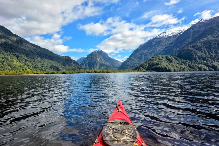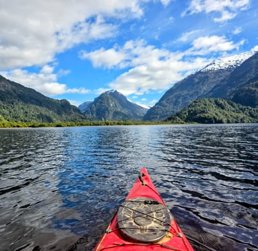 After departing from the vibrant coastal city of Valparaíso, we continued sailing southward towards the breathtaking landscapes of Puerto Chacabuco in Northern Patagonia. This picturesque spot marked the beginning of our journey through one of the most pristine parts of the world. Calum and I met with a few locals who took us kayaking on beautiful Lake Los Palos. This area was magical with towering snow capped mountains reflecting in the glassy waters. A day neither of us will soon forget.