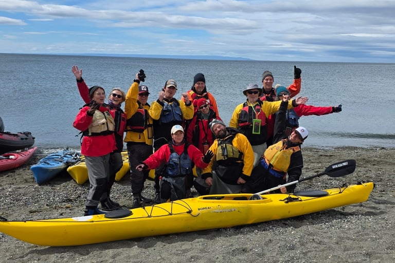 Today we are in the Southern Chilean town of Punta Arenas. We arrived here this morning after having successfully navigated the hazardous Straight of Magellan. As many of you learned in grade school, this straight was discovered by Ferdinand Magellan in 1520 and is one of the few sea routes that connects the Pacific and Atlantic Oceans. This morning, Calum and I once again donned our kayak gear and paddled the straight with a local outfit. Luckily, we were welcomed with calm waters and sunny skies, rare conditions for this part of the world. It was such a thrill to navigate these kelp bed filed waters knowing full well the history of this magical land.